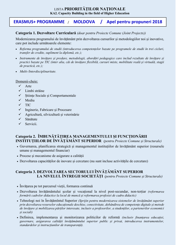 Agenția Executivă pentru Educație, Audiovizual și Cultură (EACEA) a făcut publice prioritățile naționale, regionale și trans-regionale pentru Proiectele de Consolidare a Capacităților în Învățământul Superior.