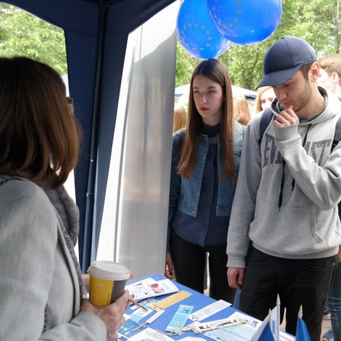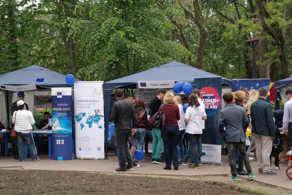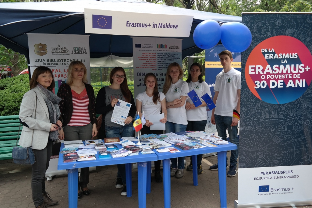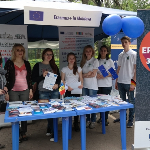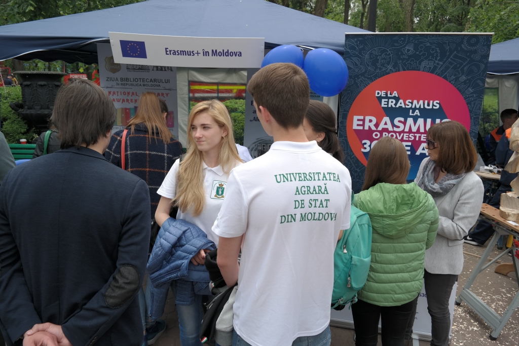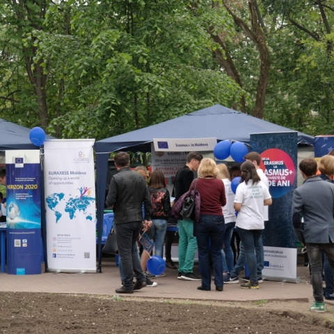 Echipa Oficiului Erasmus+ Moldova a participat, pentru al treilea an consecutiv, în cadrul Orășelului European organizat la Chișinău pe 13 mai de către Delegația Uniunii Europene în Republica Moldova pentru a celebra Ziua Europei.