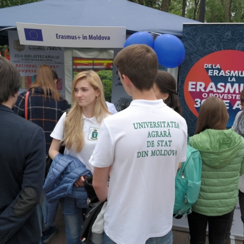 La cortul Erasmus+ amenajat în Orășelul European au putut fi găsite informații despre bursele de studii oferite studenților și tinerilor din Moldova în cadrul Programului, despre proiectele implementate în învățământul superior din Republica Moldova, dar și despre programe finanțate prin Erasmus+ în cadrul universităților din țara noastră.