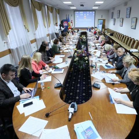Reprezentanții universităților beneficiare ale Programului Erasmus+, reuniți într-o ședință comună pentru a discuta impactul și gestiunea financiară ale proiectelor