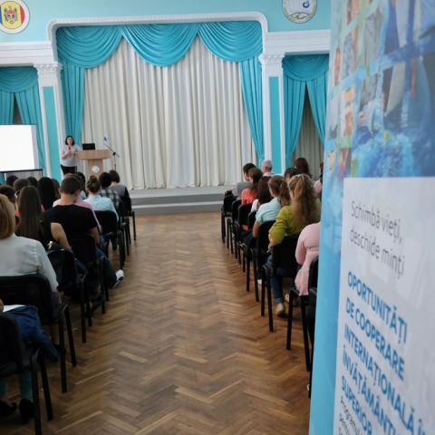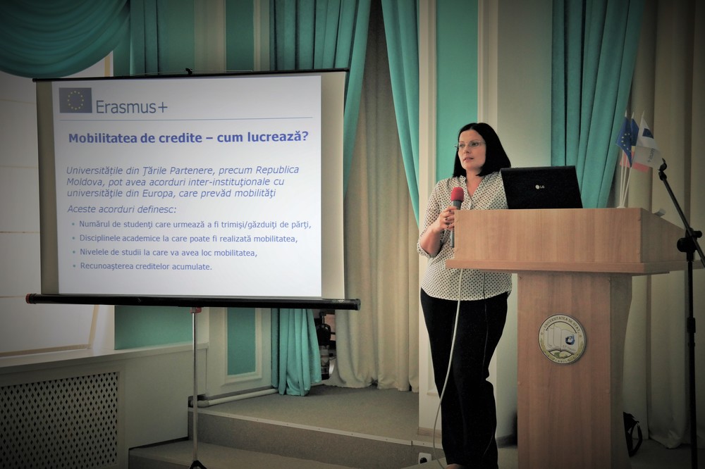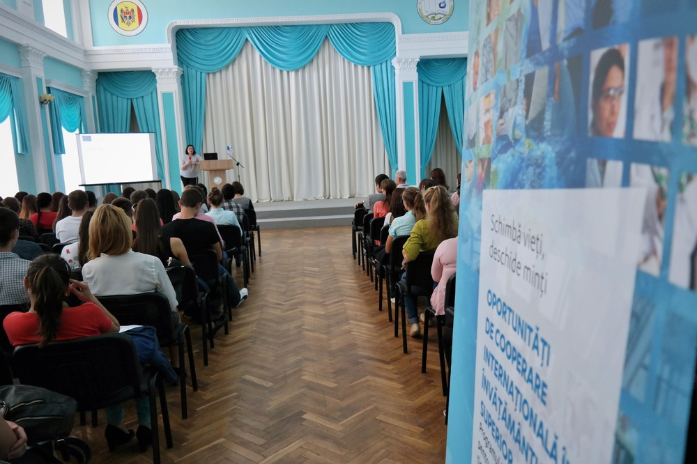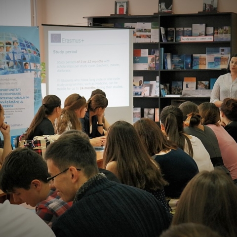 Sala de Festivități a Universității de Stat "Bogdan Petriceicu Hașdeu" din Cahul a găzduit peste 100 de tineri dornici să cunoască totul despre Erasmus+. Studenții din sudul țării au aflat detalii despre acțiunile Mobilitate Internațională de Credite și Programe Comune de Master: