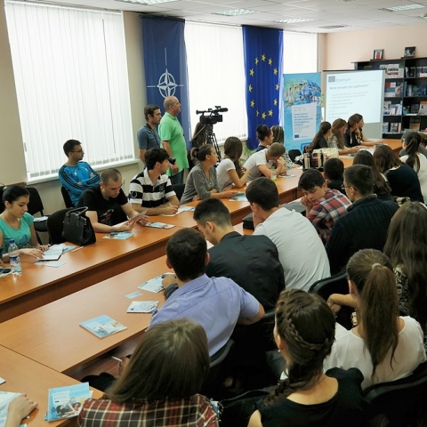 Oficiul Național Erasmus+ Moldova a început seria de întâlniri cu studenții în cadrul campaniei naționale “Information Day”. Echipa Oficiului Erasmus+ a mers, pe 17 septembrie, la Comrat și Cahul, pentru a le vorbi tinerilor despre oportunitățile de studii oferite de Programul Uniunii Europene pentru Educație, Formare, Tineret și Sport 2014-2020. Aproximativ 150 de studenți au aflat, în acest fel, cum pot beneficia de posibilitățile de studii oferite de program.